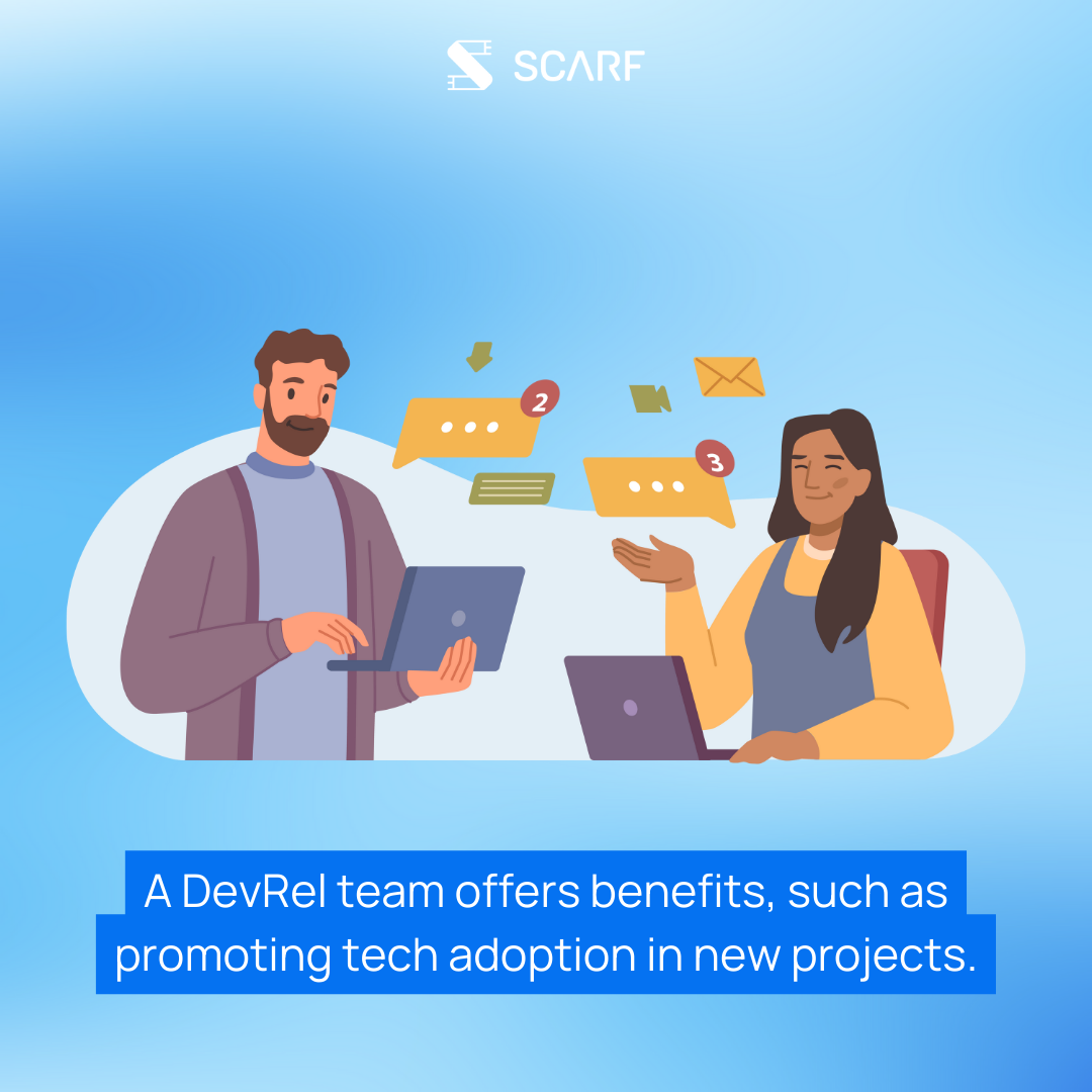- Introducing Tech into New Projects: A strong DevRel presence means that your technology could be top-of-mind for developers when starting new projects. This can drive the organic adoption of your tech stack.